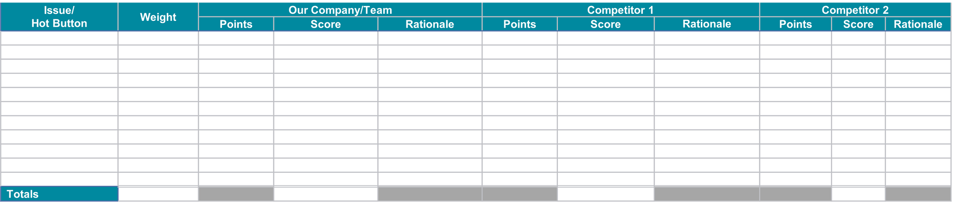 Figure 1. Sample Blank Competitive Analysis Chart